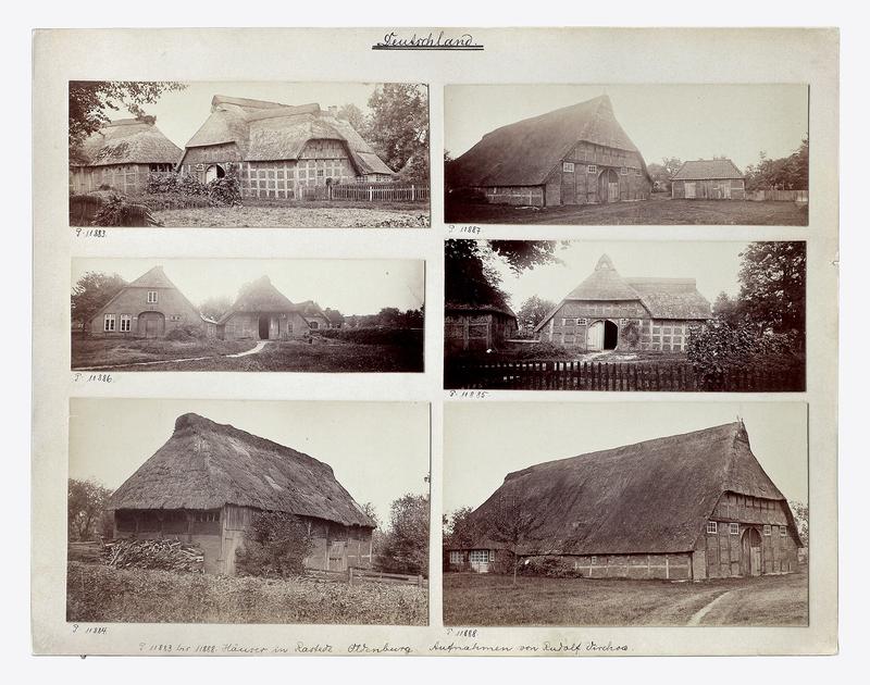 Rudolf Virchow, « Maisons de Rastede Oldenburg », Berlin, s. d., photographies marouées sur carton, panneau « Allemagne », entre 60 x 185 mm et 117 x 190 mm. © Museum für Europäische Ethnographie.