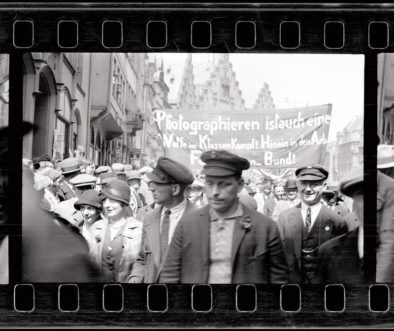 Sur la banderole : « Photographier est aussi une arme dans la lutte des classes ! Entrez dans l’Union des photographes ouvriers ! »