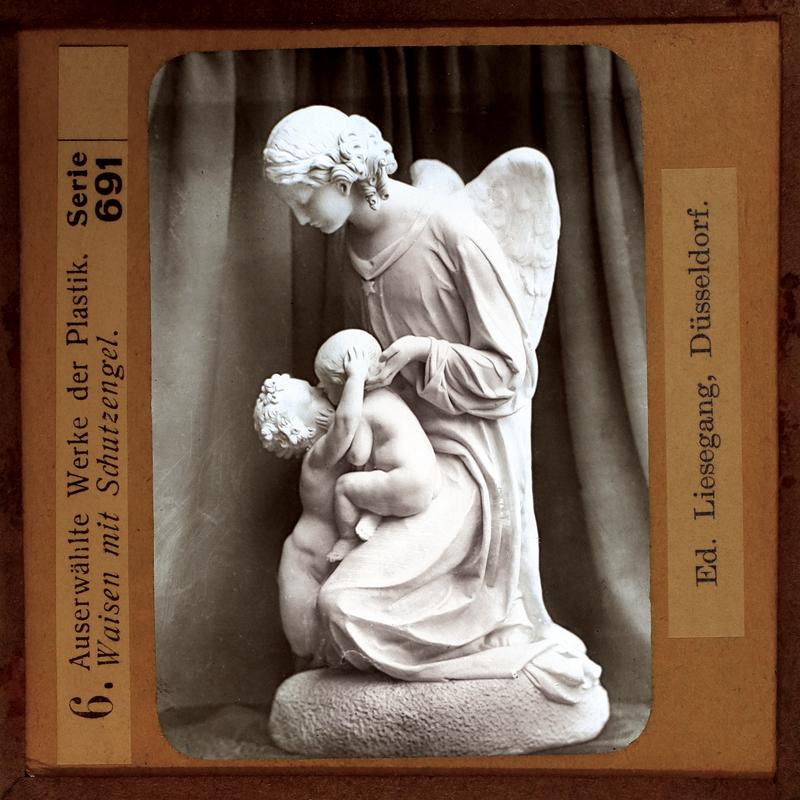 « Orphelin avec ange gardien », plaque de la série « œuvres choisies de la sculpture », Düsseldorf, Ed. Liesegang.