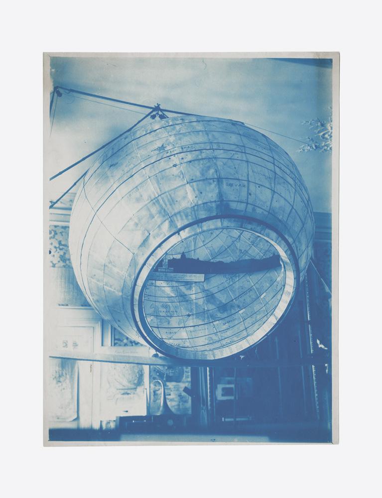Photographie du prototype de la sphère céleste creuse conçue par Albert Galeron, cyanotype, 1901. Glasgow, Strathclyde University Archives (T-GED-15-2-11).