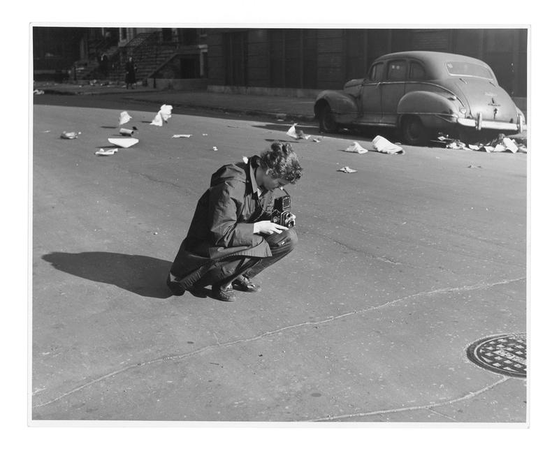 Else Tholstrup photographiant des bouches d’égout pour l’exercice Anything that glitters is not gold, Chicago, circa 1952, tirage argentique, 20,3 x 25,2 cm. Berlin, Bauhaus-Archiv (2018/2).